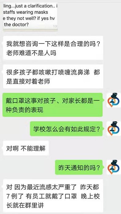 这位老师表达了自己对校方意见的不理解:为什么在这个非常时期戴口罩不可以?而且在学校这么重要的地方,很多孩子都咳嗽打喷嚏流眼泪,不仅对老师来说不安全,如果万一老师有发烧打喷嚏的状况对孩子来说更是不安全。