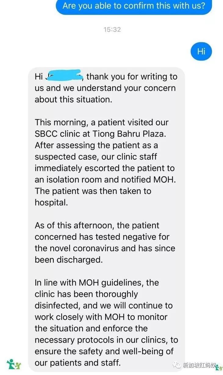最新消息:红蚂蚁下午联系上SBCC Baby and Child诊所,对方告知,今早那名疑似病患到医院进行病毒检测后,结果呈阴性,目前已出院回家。