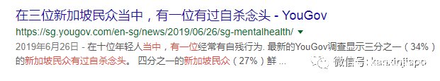 今天(7月29日),新加坡发布了一份令人心惊的报告:2018年新加坡自杀率比2017年高了10%!