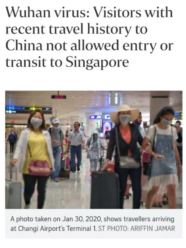 随着武汉肺炎疫情在中国湖北以外的省市扩展,政府决定从明天(2月1日)晚上11时59分起,禁止所有过去14天曾到中国大陆的旅客 (不论国籍) 入境新加坡。