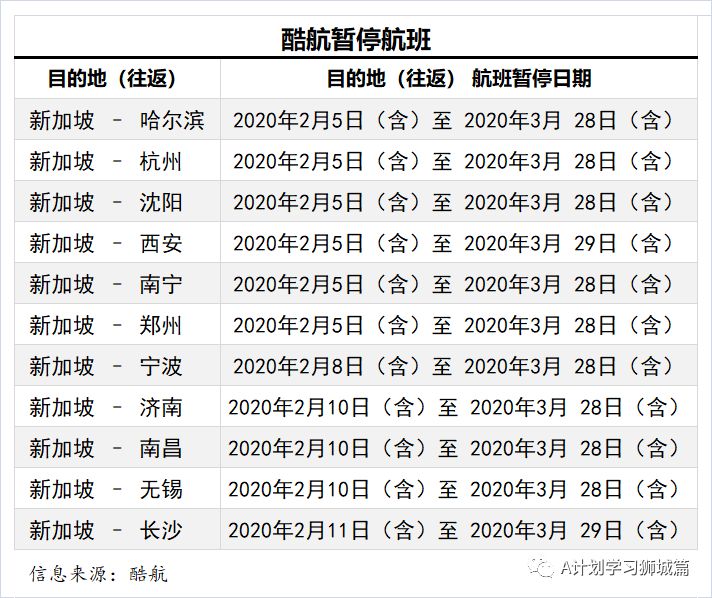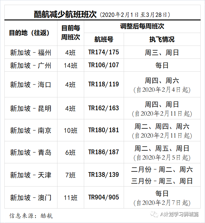 由于新型冠状病毒爆发规模不断扩大,导致需求疲软和运营限制,酷航将在中国大陆、香港和澳门作出以下航班调整。