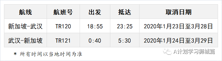 关于武汉-新加坡进出港航班取消通知