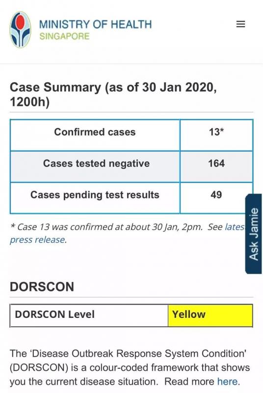 截止1月30日下午2点,新加坡再次确诊3例新型肺炎患者,全岛共累计13例,疑似病例为49例。
