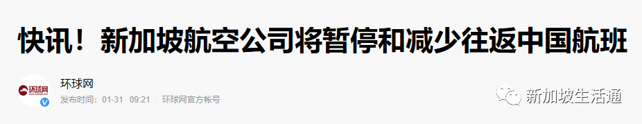 快讯!新加坡航空公司将暂停和减少往返中国航班