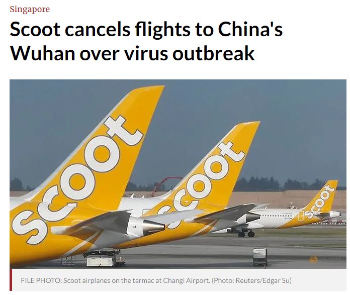 图源:CNN Buisiness 新加坡酷航 捷星航空和新加坡航空公司 也暂停飞往中国一些城市 酷航飞往武汉的航班 继续停飞至3月底 捷星暂停到中国合肥 贵阳和徐州的班机 新加坡航空公司也 加强防疫措施 暂停所有飞往北京和上海机组人员的 停留安排