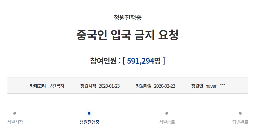 韩国青瓦台59万人请愿 暂时禁止中国人入境