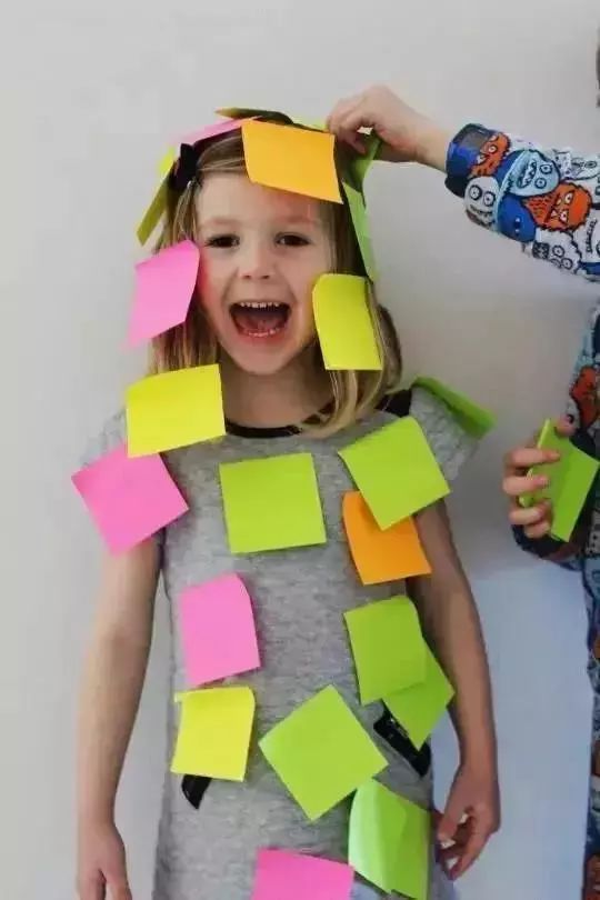 便利贴挑战赛除了脸上,尽可能的在孩子身上贴便利贴吧,一分钟内贴的最多的人获胜!