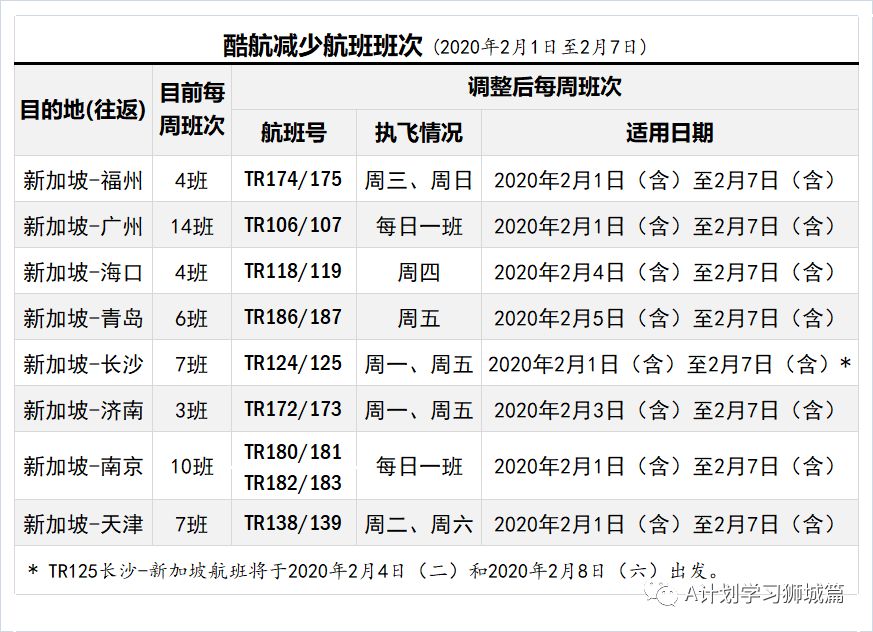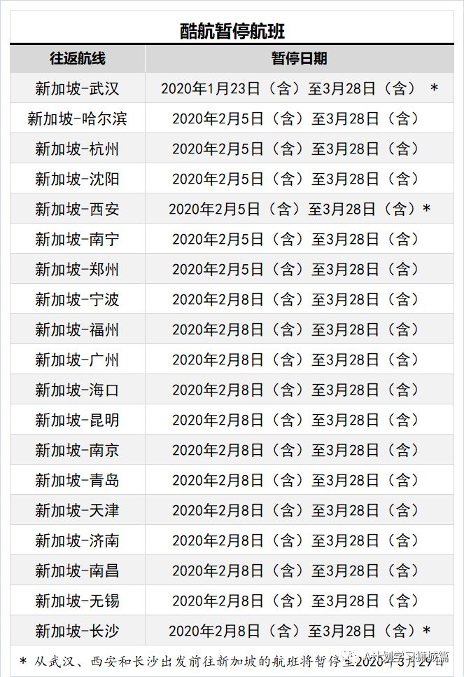 在2020年2月1日至2020年3月28日期间,新加坡-香港和新加坡-澳门部分航班将被临时取消。