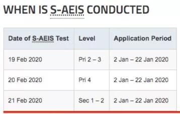 考试在每年的9月或10月举行 通过该考试的国际学生将在次年1月份 直接入读政府小二至小五、中一至中三 AEIS考试语言是英文