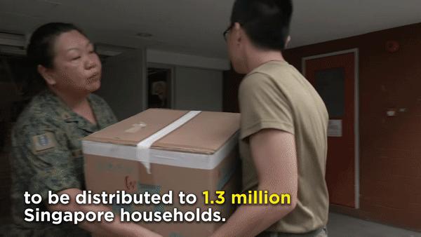 因此,新加坡政府动用武装部队的军人即刻执行包装口罩。