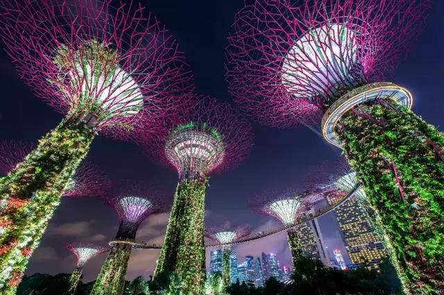 留足时间去探索新加坡的新植物园,包括鲜花穹顶(Flower dome)和云雾森林(Cloud Forest)。花园里的擎天大树(supertrees)在夜间的灯光秀期间(19:45和20:45)特别壮观。