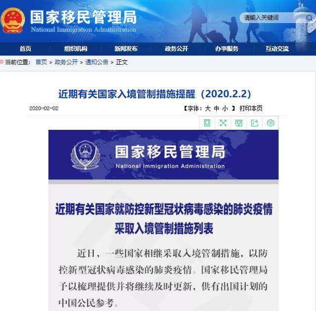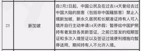国家移民局官网关于新加坡入境提示(2020.02.02版本)