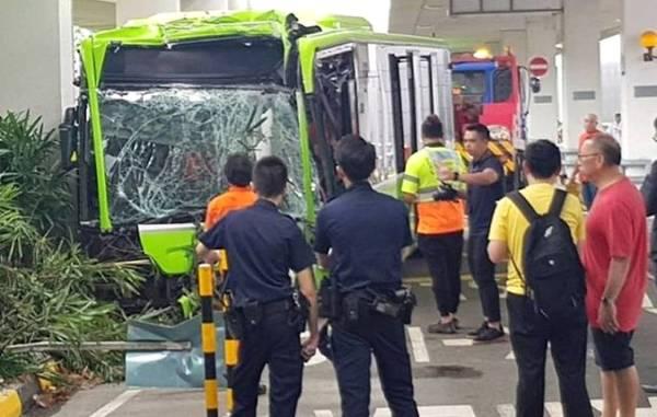 樟宜机场巴士撞柱 司机困车座 6乘客送院