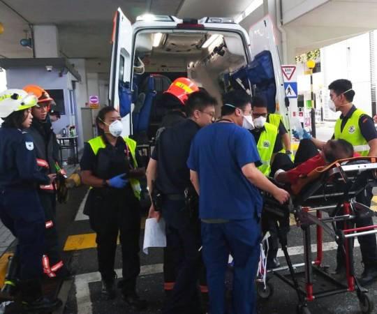 巴士司机在神志清醒的情况下,被送往樟宜综合医院接受治疗。(取自新加坡民防部队面子书)