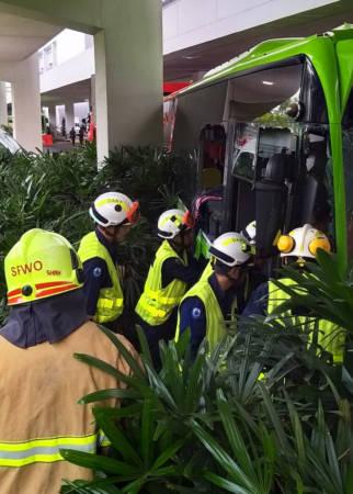新加坡民防部队人员花了大约45分钟,才将受困的巴士司机救出。(取自新加坡民防部队面子书)