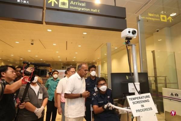 内政部长兼律政部长尚穆根昨天(2月2日)走访星耀樟宜(Jewel Changi)和樟宜机场第一搭客大厦,为海关人员和负责边境检疫的医护人员加油打气。