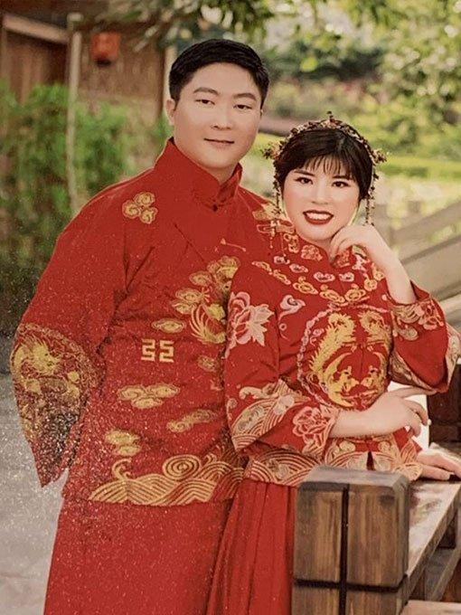 尤先生与尤太太身穿中国传统婚服拍婚照。