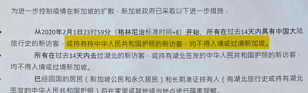 “只要是持有中国护照的,都不能飞(新加坡)”