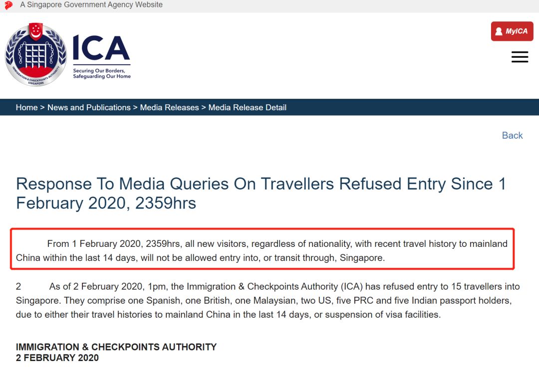 新加坡移民局的告示