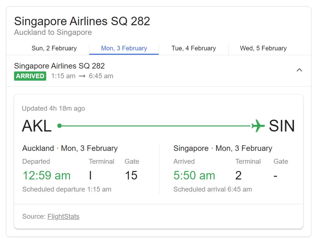 搭乘新航SQ282航班飞往中国