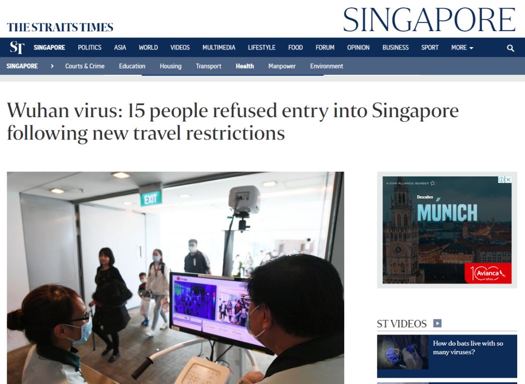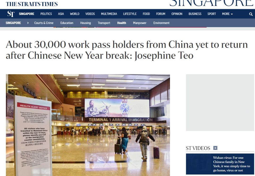 入境:2月1日起,14天内去过中国的游客,不分国籍,都暂时禁止入境新加坡,或过境。