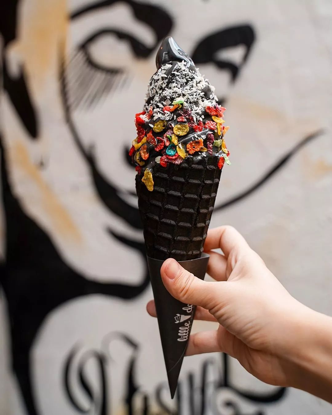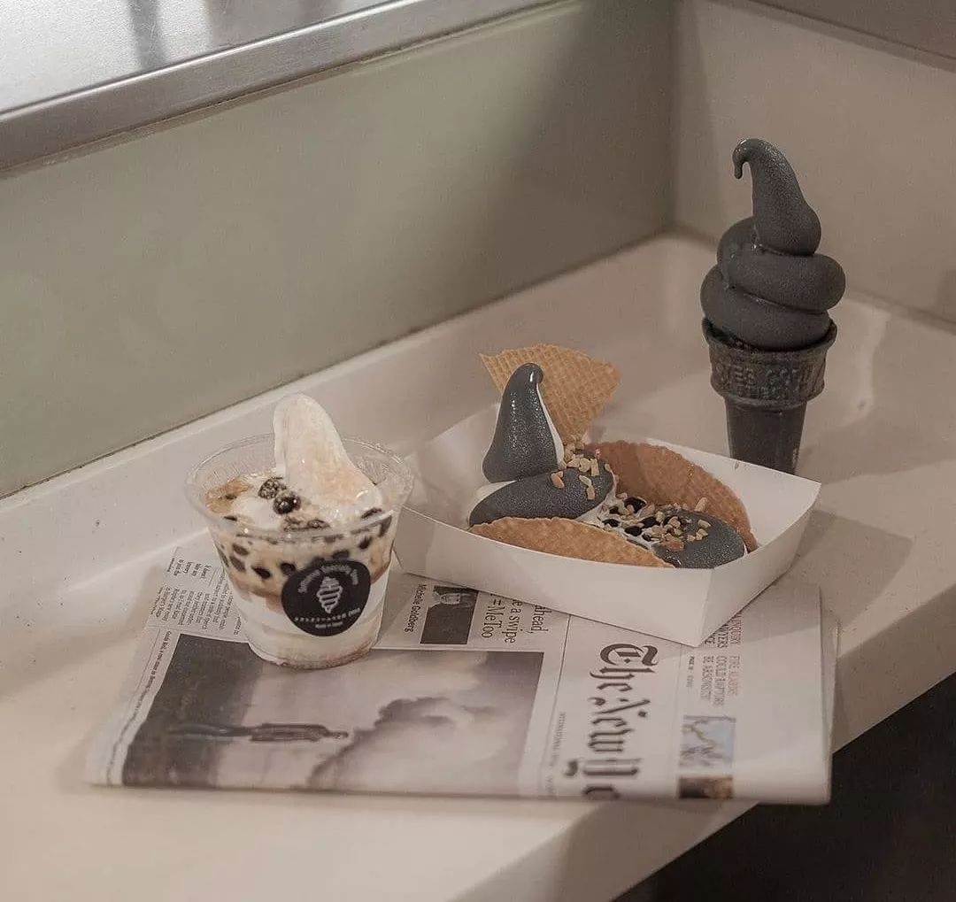 黑色的蛋筒是因为涂上可食用自然活性炭