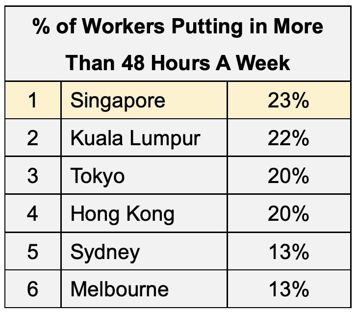 而这项排名第一的就是新加坡报告显示新加坡当前有超过五分之一(23%)的人员工作超时。
