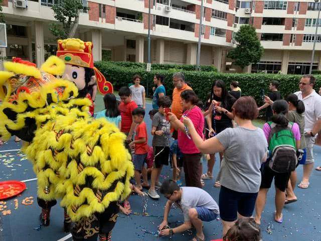 农历正月初八,新加坡街头的舞狮表演