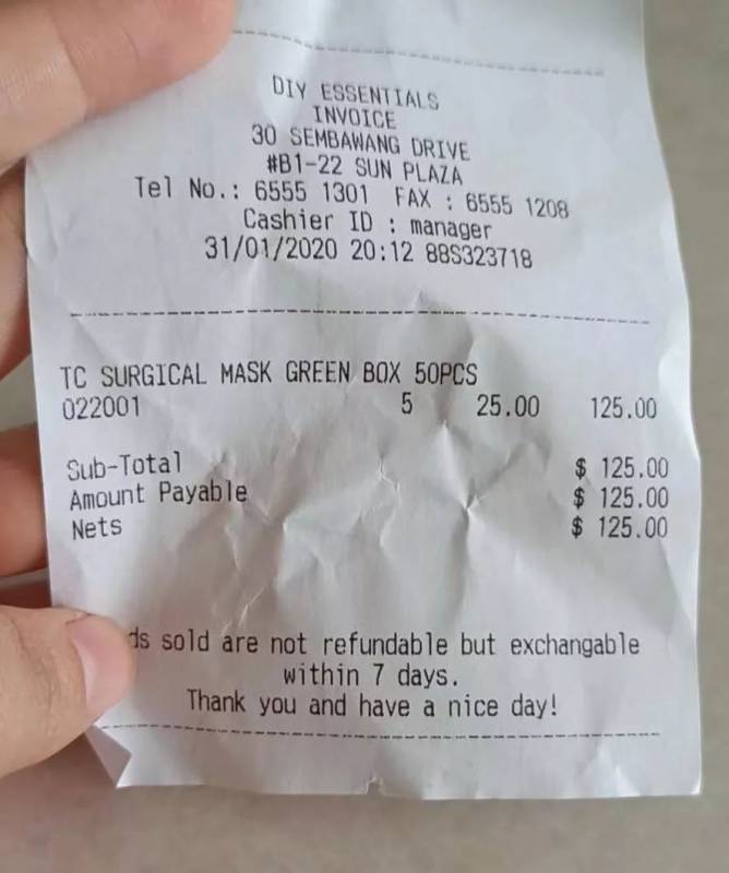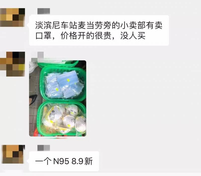 看见一个N95口罩卖到8.9新币/个。