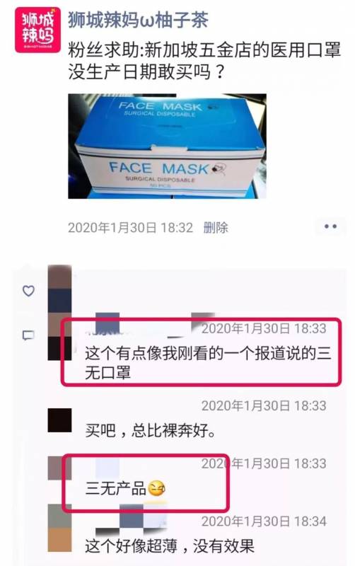 摸了摸自己被痘坑痘印“毁容”的脸,辣妈深表同情…… 除了上面那款已经被媒体曝光的三无产品,还有粉丝反应另外一款在全岛排队购买的口罩也有类似的情况。包装简陋、没有生产日期等等。