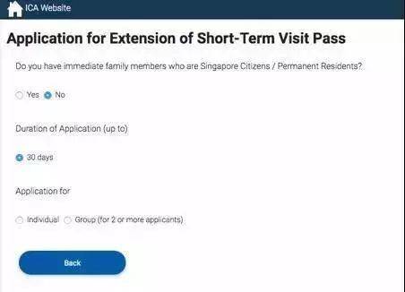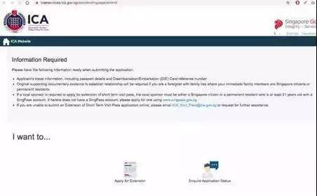 02短签延期小贴士 1、入境不足14天的,暂时不要去ICA,网上延期也要求14天过后进行操作。 2、请注意,申请人护照有效期不足六个月的没法网上延期,上个星期四有人去ICA,没有注意到这个细节,被拒绝了。 3、根据前线传来的消息,最近几天去ICA现场延期的很多都批了30天,批了的朋友留意一下ICA柜台给盖的章那里,会显示延期到什么时候。由于很多人的签证最近几天到期,建议大家分批次下去柜台延期,合理分配资源,能网上延期的,建议先进行网上操作。4、已经网延还没有结果的,建议等网延结果再决定是否去ICA。 5、如果是PR和公民直系亲属,可以延期89天,但批60还是89看具体情况。如果没有直系亲属在新加坡,理论上只能一共60天。 6、常规上,网上申请延期的如果批准是从签证到期那天开始延,去ICA申请延期的是从申请当日开始延或者返程机票后几天开始延。 7、第一次申请延期,建议在网上进行:地址如下:https://www.ica.gov.sg/visitor/extendyourstay/visitor_extendyourstay_extensionofsocialvisit (复制黏贴至浏览器) 下面是操作截图: