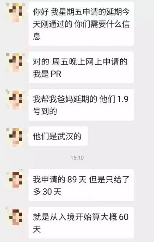 网友二是PR,帮父母延期,申请89天,批准了30天。父母来自湖北武汉。