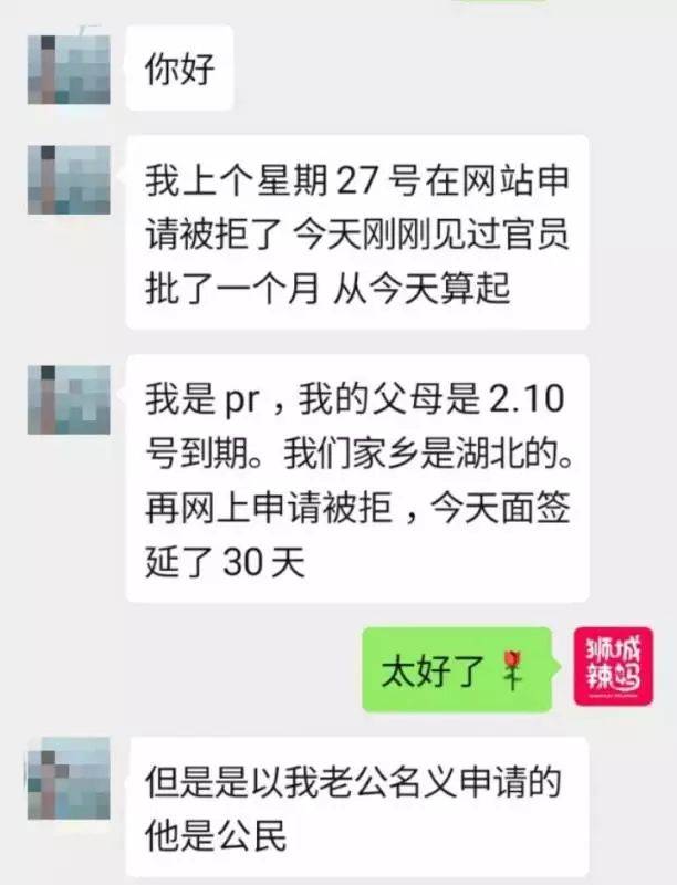 网友三以老公名义申请(老公为公民),延期30天。父母来自湖北。