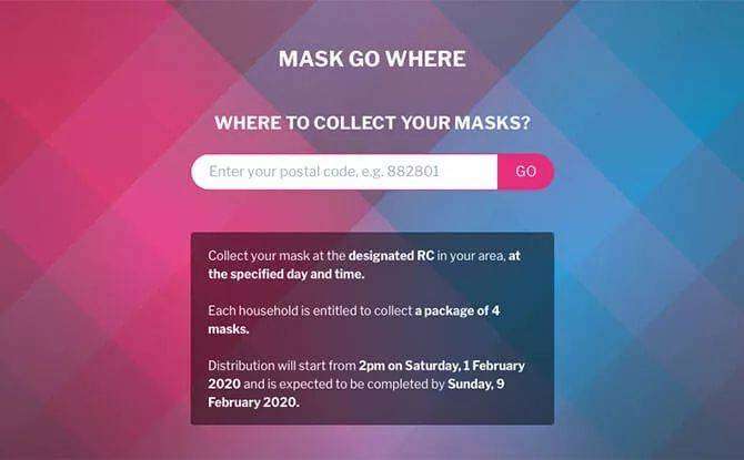 居民领取地址的查询网站:https://maskgowhere.sg,新加坡每栋楼都一个唯一的邮编,输入邮编,就可以查询领取口罩的地址和时间。