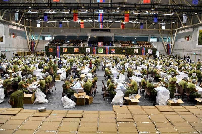 该批军人分3个队伍,每批约450人,以轮班制度24小时赶工。每个队伍一次值班8小时,能够包装20万包口罩,一包则有4个口罩。其后武装部队运用33辆多用途车辆负责运送口罩至全国各处的89个发放地点,2月1日前完成全部运送。