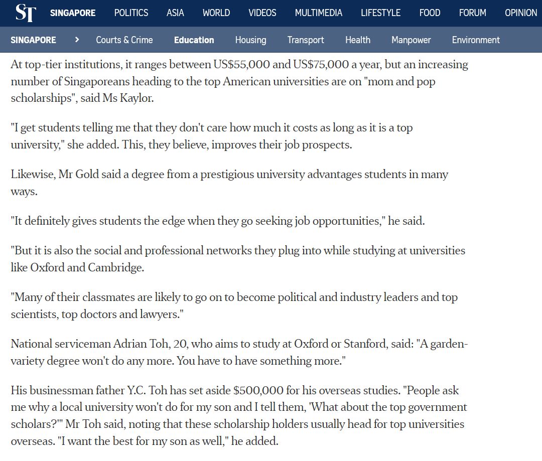 主要是因为历史的原因,让新加坡的教育学历受英国大学高度承认。