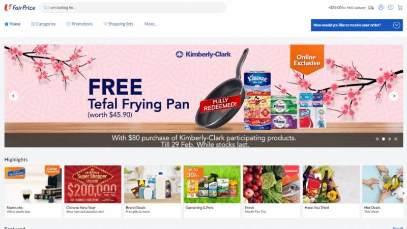 图片来源fairprice.com.sgFairpricehttps://www.fairprice.com.sg/购物满$59就可以免费送货到家