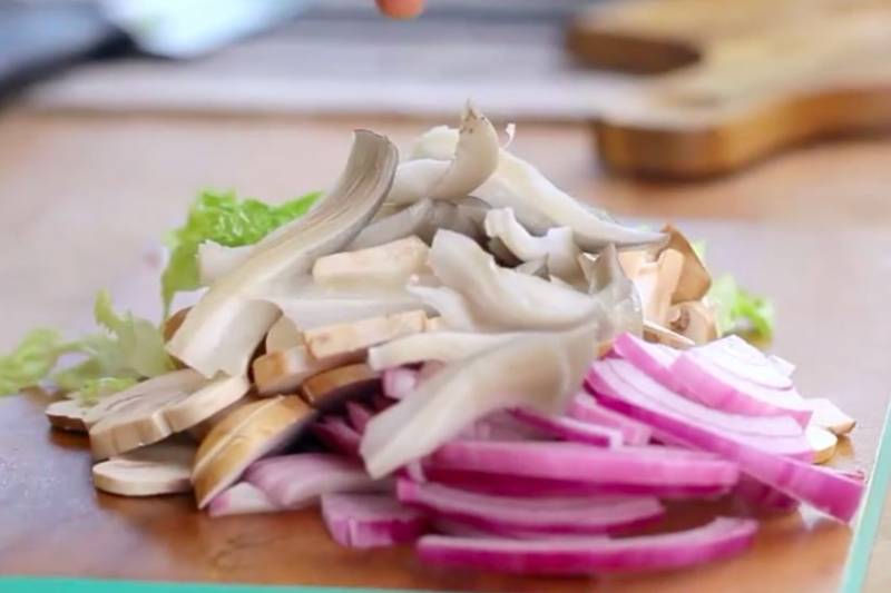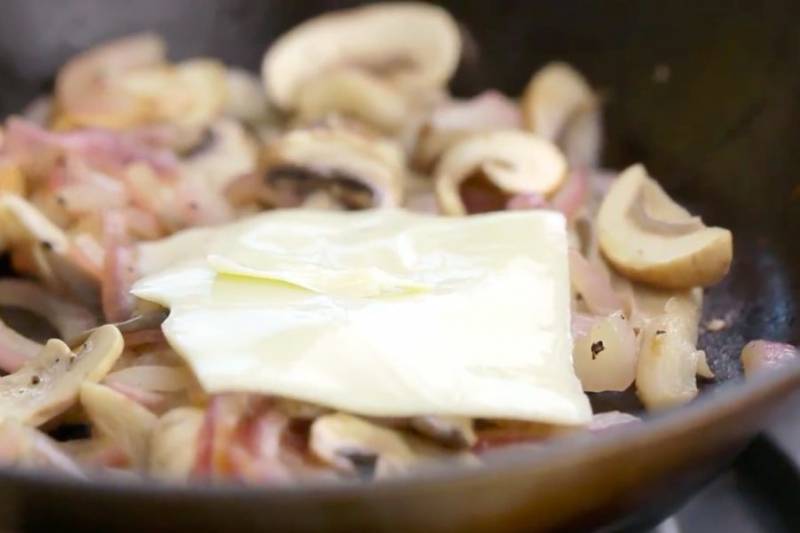 图片来源jijidown.com所需主料鸡蛋5个口蘑3个,平菇1朵,洋葱,生菜所需调料食用油,食用盐,黑胡椒干乳酪,奶酪片1片烹饪步骤:1. 口蘑,平菇,生菜和洋葱清洗干净,切片(最好切丁)2. 热锅加油,依次加入洋葱、口蘑、平菇和生菜,加入少许食用盐、干乳酪和黑胡椒翻炒,再加入一片乳酪,继续翻炒,起锅