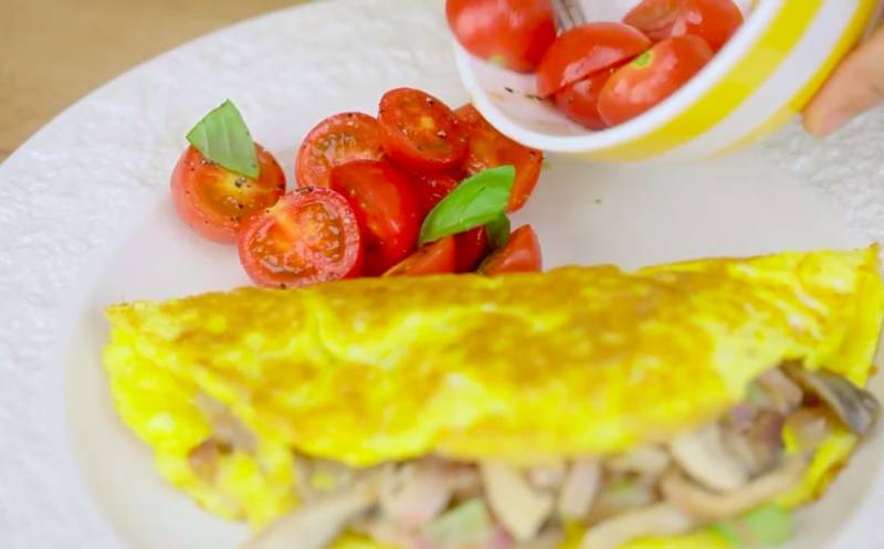 美好的一天,从营养健康的早餐开始,鸡蛋配蔬菜制做而成的欧姆蛋,配上几颗圣女果,开启充实的一天。