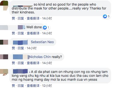 (2月4日)Facebook上一个贴文引发热议:在新加坡榜鹅地铁站,有新加坡人与越南人在免费向路人们发放口罩。
