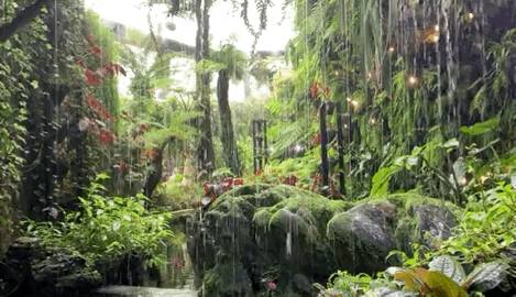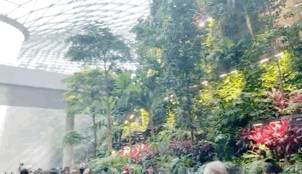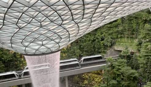 新加坡的机场值得玩一天, 星耀樟宜是杰作。 室内整整4层热带雨林,有着2000多棵树木和10万多株灌木, 在热带雨林的中央,一注漩涡瀑布从天而降