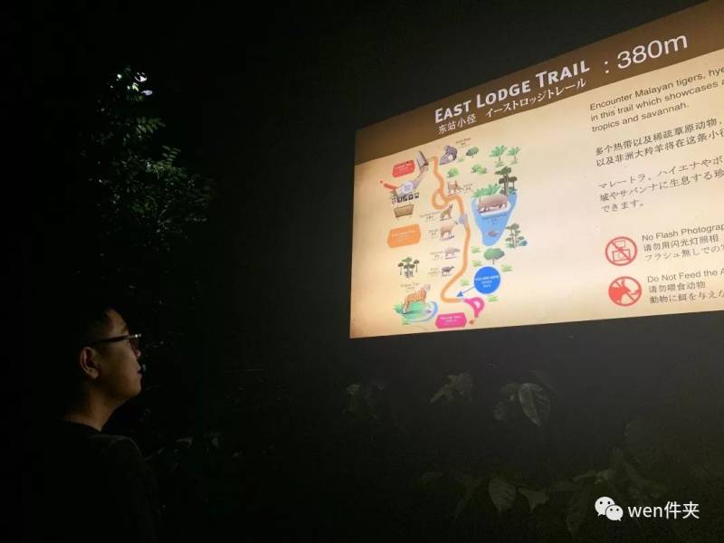 夜间动物园是一片热带丛林, 各种夜间动物划分栖息地在不同的片区生活着。 一座夜间动物的保护区, 游客只是小心翼翼的观望者。 坐着小火车,耳机里轻轻地解说,火烈鸟、马来貘、豺……各种动物真切地出现在眼前, 不过,能不能看到是个概率问题,动物不见得就站在那里 小火车上一旦有人找到了动物,便会压低着声音“看,在这里在这里” 大家无不压抑着声线:“哪儿呢哪儿呢?”“天哪!”