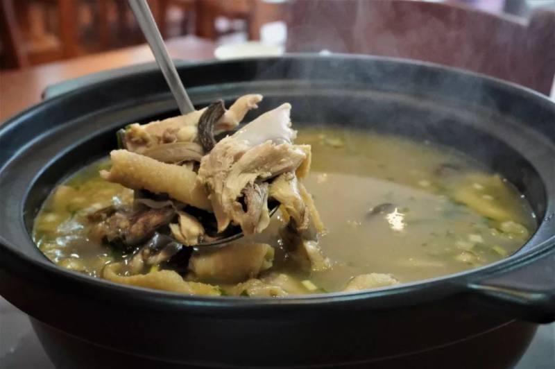 说起煲汤,大多数人都更追求食材本味 春秋菜馆的这道汤,小编“煲”你满意 山菌口感肉质细嫩,清香四溢 鸡肉炖的软嫩,吸足了汤汁的精华 盛器超大砂锅,可以最大限度保温 来个汤拌饭,回味无穷