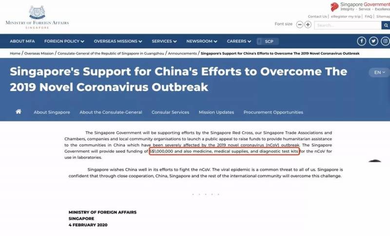 对新加坡市民保护有佳,对中国更是给予援助之手——新加坡外交部官网4日发布声明称:将为中国出现的新型冠状病毒疫情提供100万新元的种子基金,以及药物、医疗用品和供实验室使用的新型冠状病毒检测试剂盒,还将支持新加坡红十字会、贸易协会、商会、企业和当地社区组织发起呼吁,以筹集资金向中国提供人道主义援助。