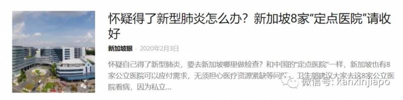 和中国的“定点医院”一样,目前新加坡也有8家公立医院可以应对疫情需求。如果在新加坡怀疑自己得了新冠肺炎,卫生部建议可到这些公立医院进行检查。