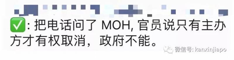 也有网友专门打电话向MOH询问得到明确答复,只有主办方有权决定活动是否终止。
