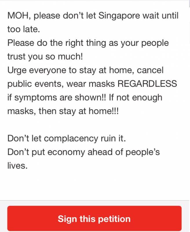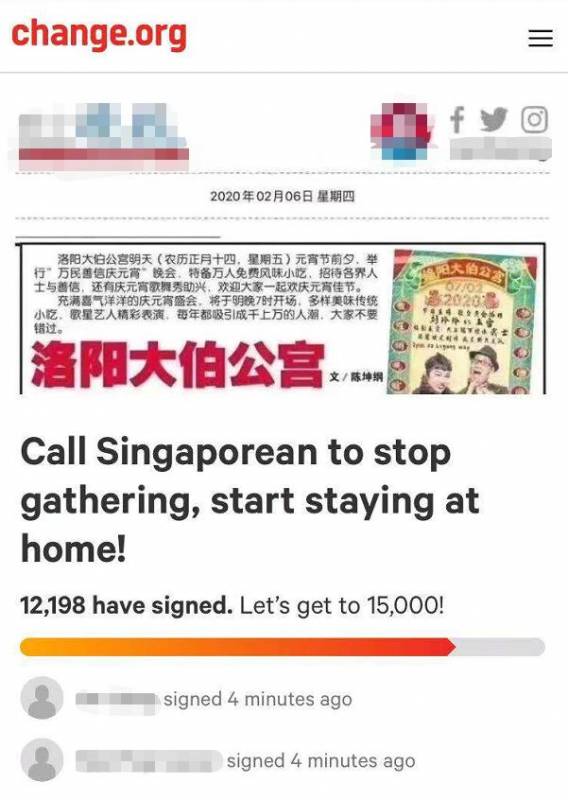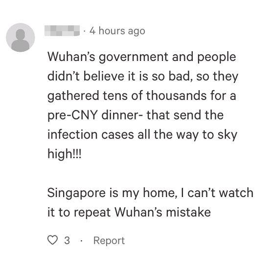 “......不相信会如此严重,甚至还召开了万人庆祝晚宴,这让情况变得更严重!新加坡是我的家,我不能看着它重蹈覆辙。”