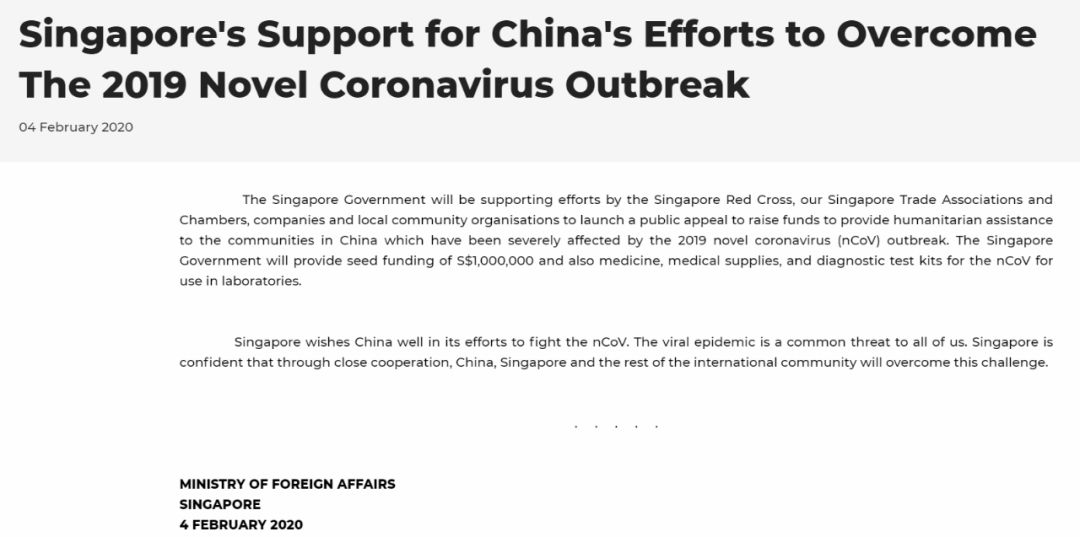 (2月7日),新加坡副总理兼财政部长王瑞杰透过脸书发帖表示,新加坡将陆续为中国提供两万个试剂盒,外加三台聚合酶链式反应(Polymerase Chain Reaction,简称PCR)机器,以帮助中国抗击新冠肺炎疫情。