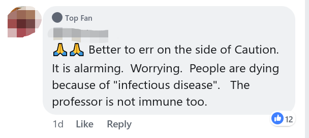 有网友表示:“宁愿谨慎点,认为这是一种警报,令人担忧。在病毒面前人人平等,教授也不能幸免。”