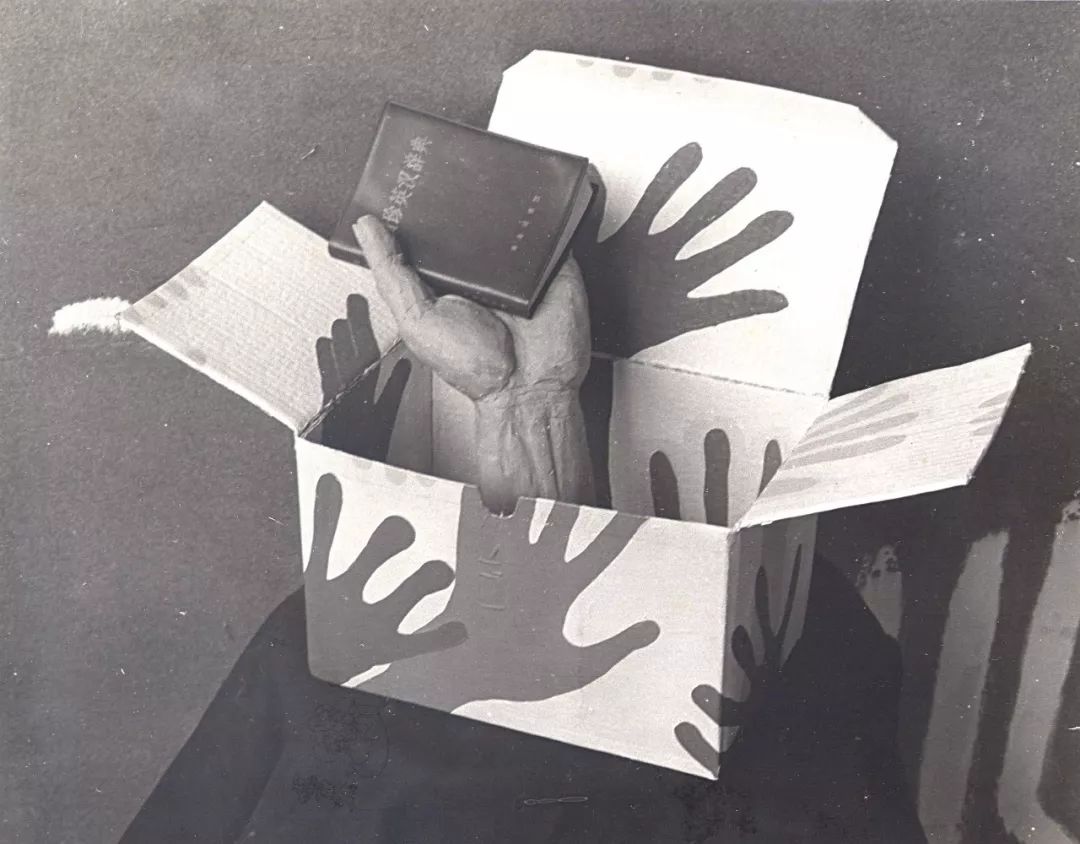 身在异乡为异客,人生地不熟又加上语言隔阂,为追求理想唯有孜孜不倦的努力适应,有时随意地将学习生活中的点滴信手拈来,竟也可当创作题材完成内容丰富的作品。大约是1978年,她将自己苦学英文的困难和挣扎很深刻地通过泥塑、纸皮箱、手印和字典构成一件装置然后拍下照片。一只握著辞典粗壮的左手从纸皮箱当中力挺而出,犹如突破禁锢,周围有好几只手的影子作争取状,照片的画面呈现力夺之后若有所得的挣扎状态。
